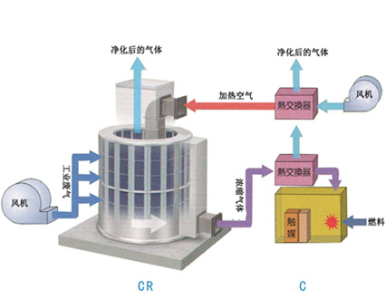 把有機(jī)廢氣加熱到760℃以上,將有機(jī)廢氣氧化生成CO2和H2O,從而凈化廢氣,并回收分解時(shí)所釋出的熱量,以達(dá)到環(huán)保節(jié)能的雙重目的,是一種用于處理中高濃度揮發(fā)性有機(jī)廢氣的節(jié)能型環(huán)保裝置。